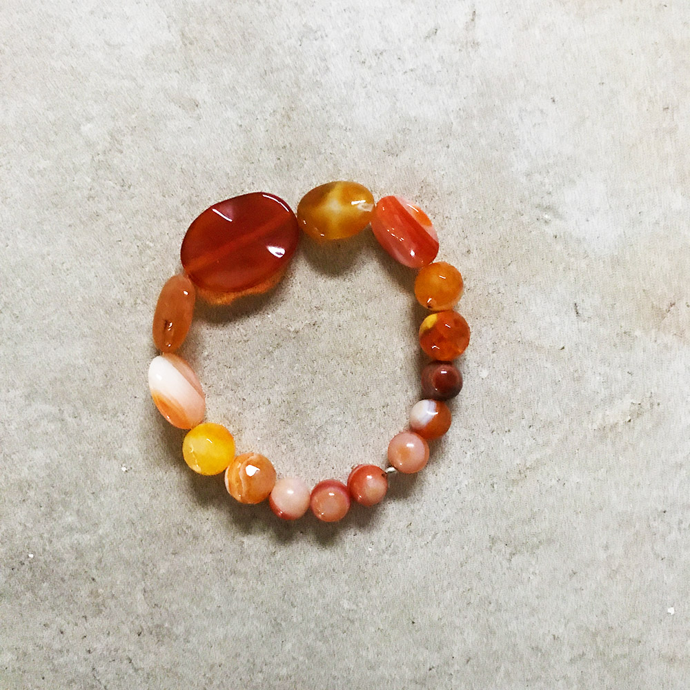 Nice bracelet made of carnelian stones. This bracelet was entirely handmade, and measures approximately 6 cm in diameter.