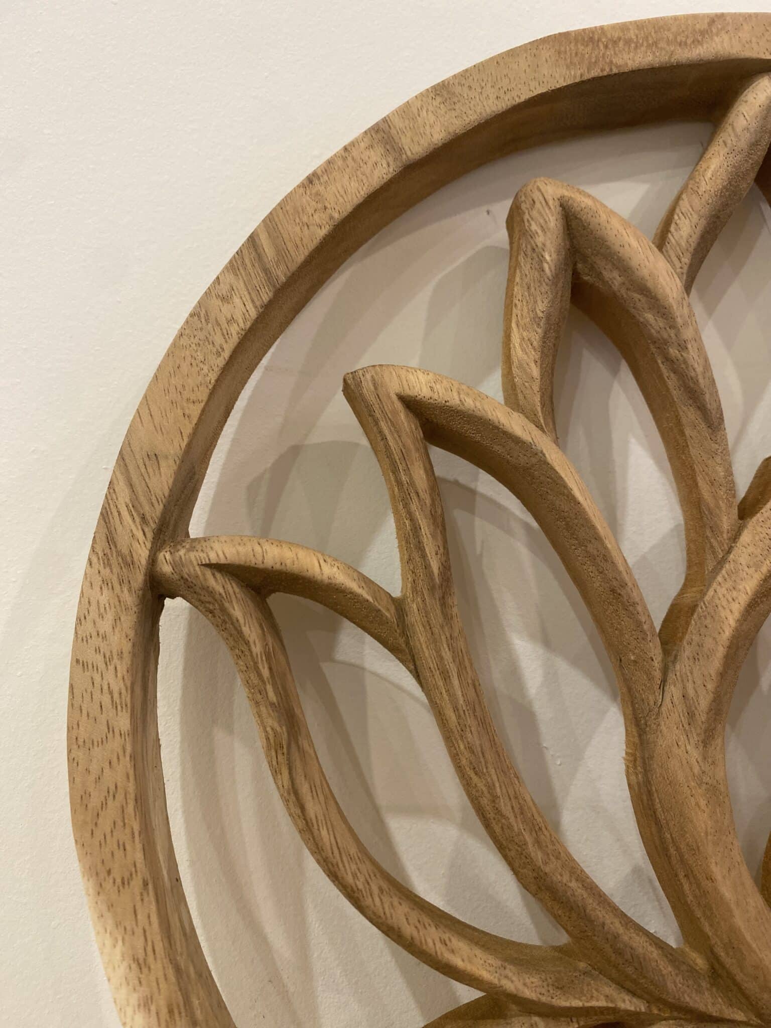 Lotus en bois massif de suar, sculpté à la main, idéal sur un mur blanc.